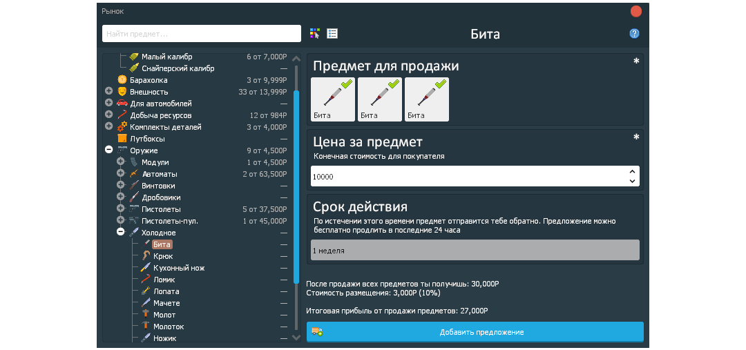 - Добавили возможность выставлять на продажу сразу несколько предметов за один раз
