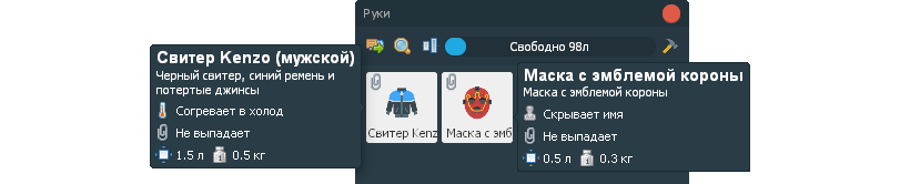 - После смерти предметы со скрепкой будут возвращаться в брюки или куртку, если там есть место